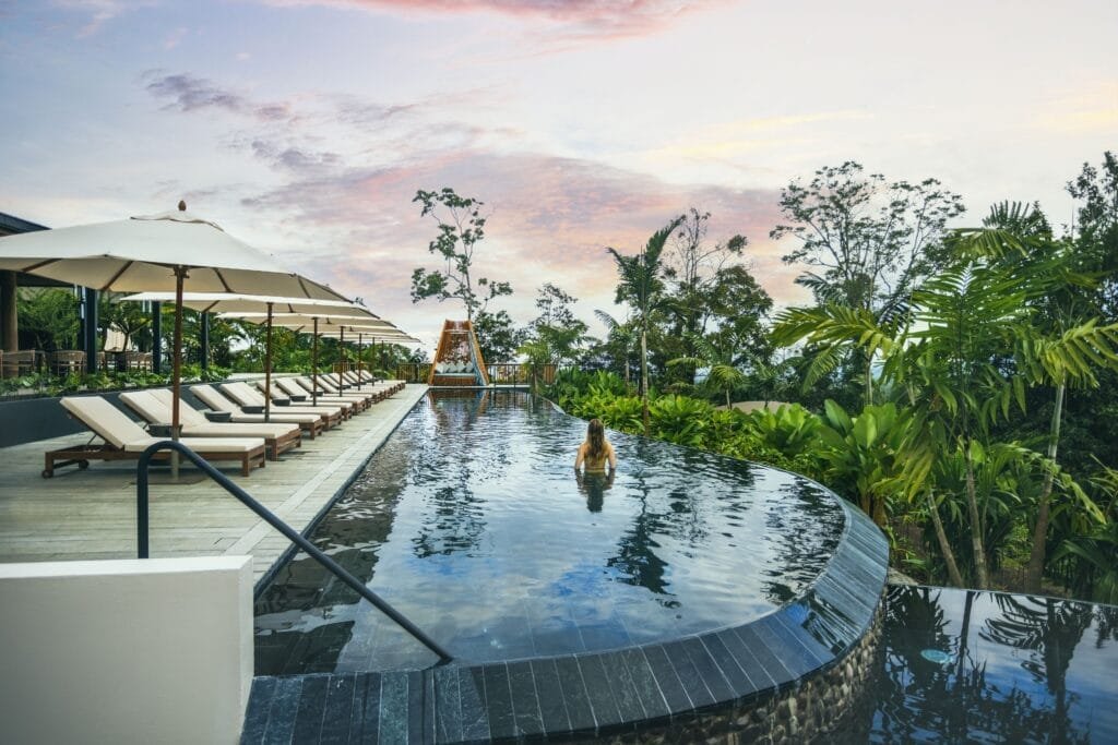 Eco-certified Luxury hotel with 3 restaurants, an outdoor pool with sun loungers, a poolside bar, a terrace and a full-service spa located at Arenal Volcano National Park.
